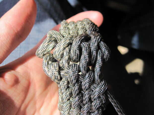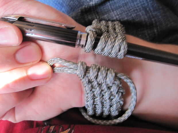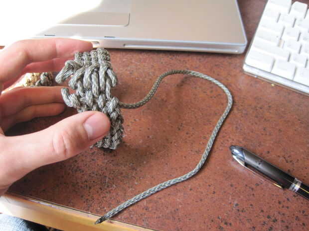 Encontrar una longitud buena cómodo alrededor de su muñeca (que podría también hacerlo más largo así que usted puede deslizar dentro y fuera de la mano). Cuando lo haces, sacar tres lazos de la punta como que has estado haciendo pero luego deja allí. Estos serán de malla junto con los bucles de la partida y serán el punto donde todo está conectado. Ahora puede quitar el lápiz y cortar el cable sobrante. Deje alrededor de 8 a 12 pulgadas en el extremo así que usted puede atar todo junto.