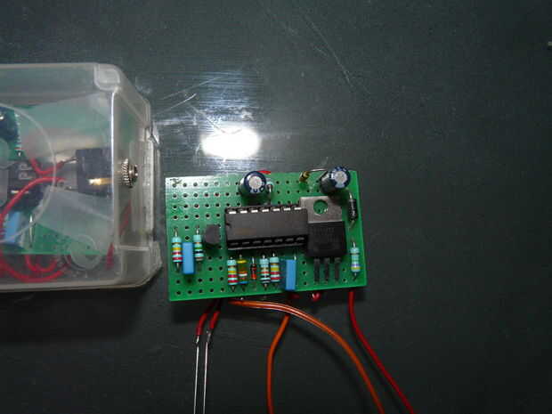 Puse mi circuito terminado en una pequeña caja de plástico transparente, del tipo que se utiliza para embalar los pernos, tuercas y tornillos (yo uso un montón de estas cajas en mis proyectos). Están muy cerca, están básicamente libres como ya compré los tornillos y es una especie de reciclaje por mantenerlos fuera del circuito de residuos. La caja es transparente aún dejó el fototransistor/diodo recoger el flash