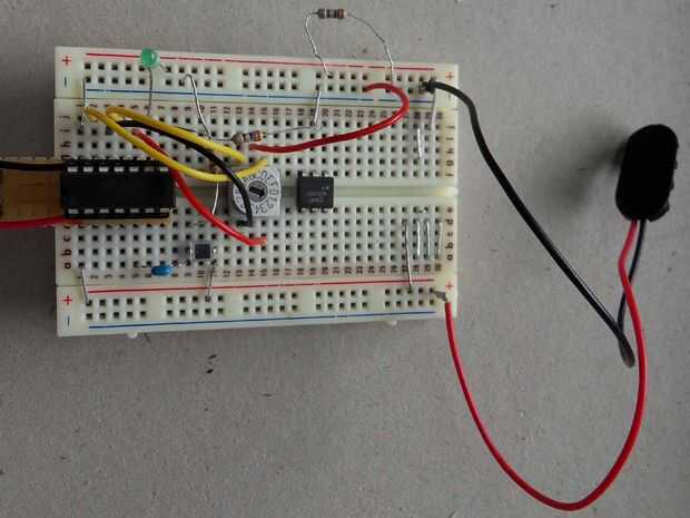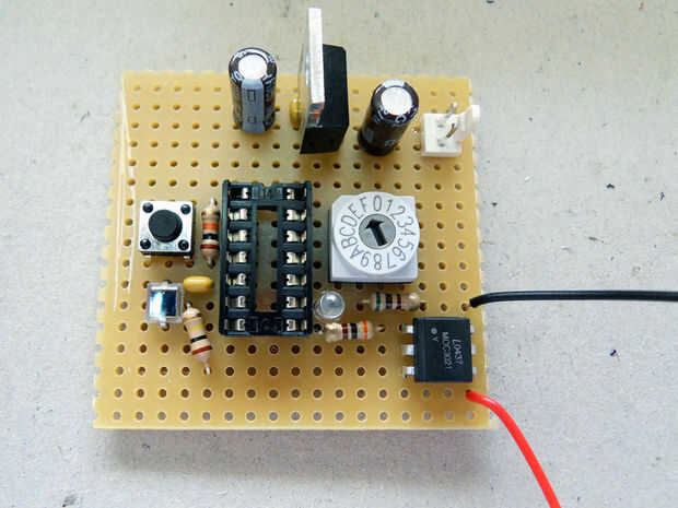 Una cosa divertida sucedió realmente cuando he probado el dispositivo. Cuando se trabaja con la protoboard generalmente hice pruebas en la noche bajo condiciones de luz más bien tenue. Pero soldado (y probado) la Junta bajo una lámpara brillante en mi banco de trabajo. Así resultó, que no reconoce cualquier flash que hice, incluso cuando flash directamente en frente del fotodiodo. Me tomó un tiempo para averiguar que el foto diodo era mucho tan sensible y tuve que cubrir parte de ella. Así que utilicé algunos cinta adhesiva y había pintada de negro, y voilá funcionó!