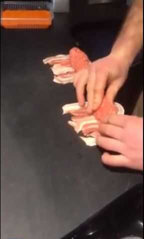Pone su laminado en carne en el fatback, asegúrese de que el rollo de carne no es de ancho para el fatback.