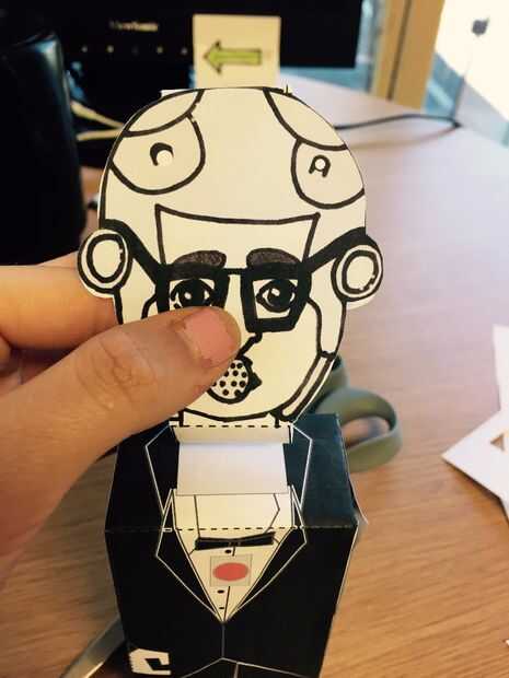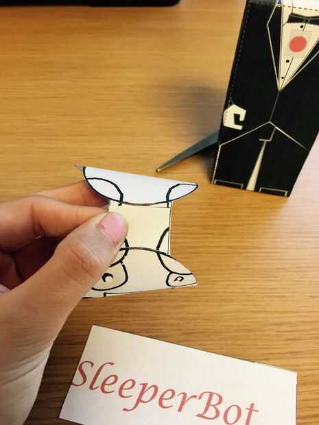 11. Coloque la cabeza sobre el cuadrado gris en la parte superior del traje - Asegúrese de que la cara está por encima de su pajarita!