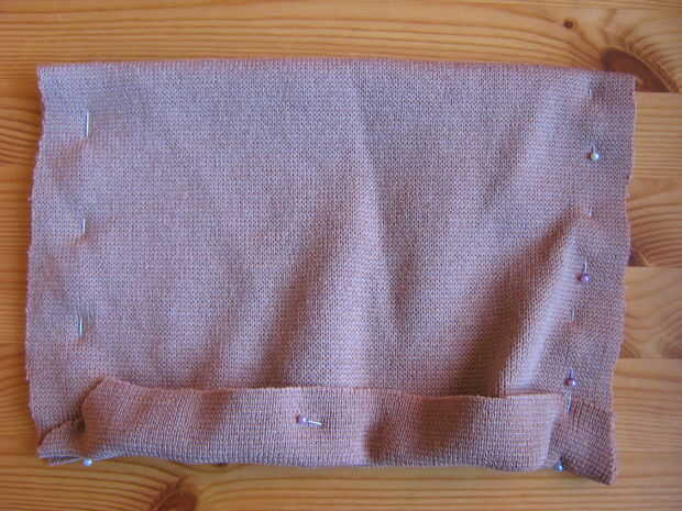 Para hacer el sombrero corte una sección de la parte posterior de la chaqueta, mina mide aproximadamente 40x25cm para entra en mi cabeza y doblé por la mitad y doblado sobre los bordes