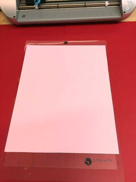 Poner la cartulina en la estera. Elegí rosa por ninguna otra razón que estaba cerca de la parte superior de mi pila y suficientemente ligero como para mostrar las líneas de corte para el Instructable. Asegúrese de que esté completamente plana - ningunas burbujas de aire.