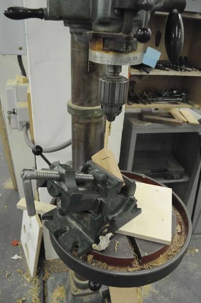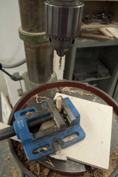 v) tomar la espiga y utilice el taladro taladro un agujero a través del centro lo suficientemente amplio como para adaptarse a algunos cables.