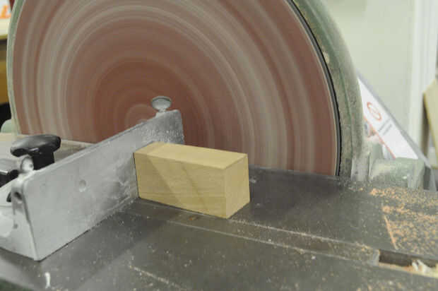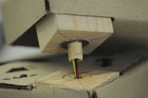 VI) usando cinta de doble cara alrededor del exterior del rodamiento de montar el rodamiento en el bloque de madera. Introducir la espiga en el centro del cojinete.
