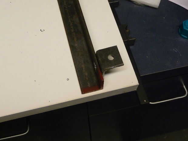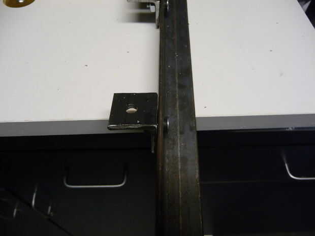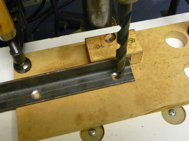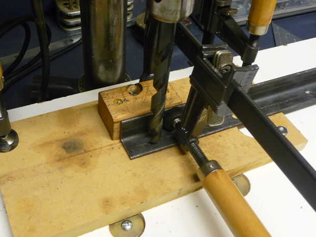 Creo que las fotos Dile lo que hay que hacer aquí... la pieza de la abrazadera y avellane los orificios.  Tamaño del taladro fue determinada por el tamaño de la cabeza de tornillo #10.  Usé el tope del taladro para asegurarse de que no perforar accidentalmente claro a través de las piezas.