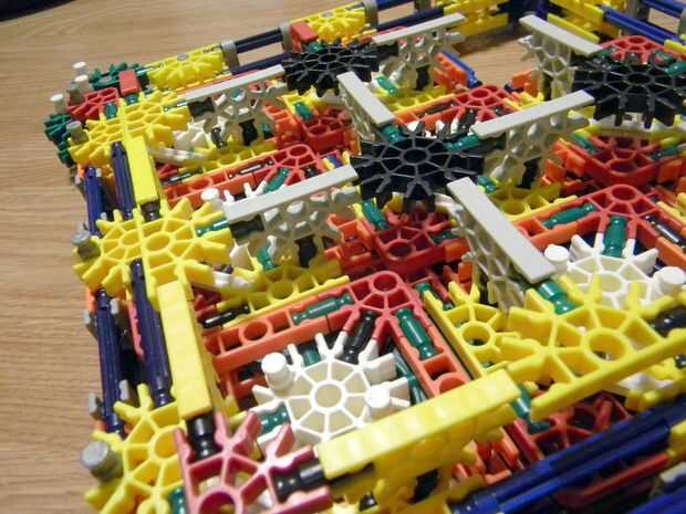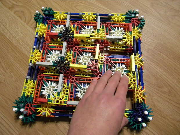 Después de colocar el azulejo de final en el marco, me di cuenta de que no había ninguna imagen para acompañarla. No quiero cortar una foto; Quería hacer algún tipo de imagen de K'NEX. Terminé creando un diseño de cuadrícula de una serie de conectores, uso de la variación de color de cada parte como una ventaja. En general, el resultado final funciona realmente bien. Puede colocar sobre la mesa y deslice alrededor o levantar delante de ti. Es un poco endeble, pero funciona! Coloco las instrucciones, pero no prometo nada con la escuela. Espero que habrá gente interesada en hacer esto!