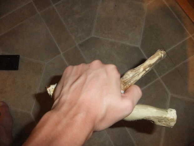 Una vez que se corta la rama en forma de y, recorte de manera que los dientes son aproximadamente 4'' de largo con una sierra. Utilizar su cuchillo o navaja de afeitar para afeitar cualquier corteza residual de la madera. Esto proporciona mejor agarre y durabilidad a largo plazo. Usted podría encontrar que es útil usar un encendedor para deshacerse de las virutas que todavía están pegados a su manija. Utilice papel de lija para opacar cualquier borde filoso y reducir el riesgo de las astillas. Este paso no es tan importante si va a envolver el asa en cuerda de nylon.