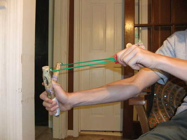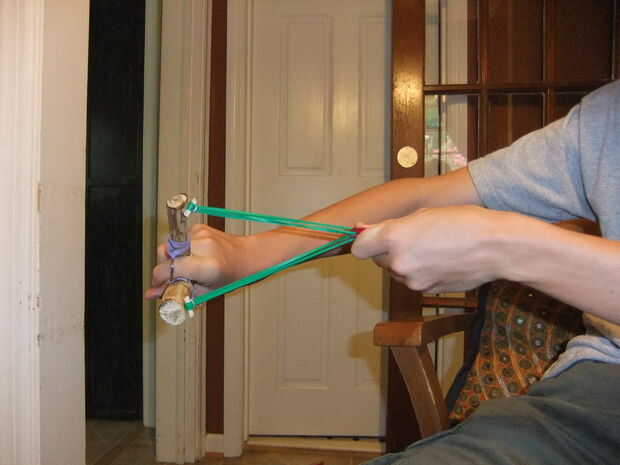 -pizca de munición deseada (menor de 1'' x 1'' x1'') en la bolsa, tire hacia atrás y soltar para disparar.