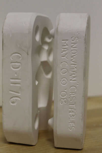 3. Prepárese su molde haciendo que el interior esté limpio y seco. Coincidir las dos mitades de los moldes, haciendo que los orificios estén alineados. Esto asegurará un cierre sellado y ninguna salida cuando slip se vierte en él. Se trata de un molde de un hombre de nieve y una calabaza que era casted de juguetes de plástico. También pueden comprar moldes intrincados y los moldes pre-hechos en fuente de cerámica.