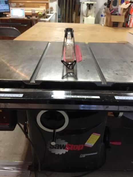 -Afortunadamente en la MS, contamos con una tabla "SawStop" sierra. Estas sierras operan con una corriente corriente eléctrica a través de la hoja en todo momento. Esta corriente es precisamente calibrada para que cuando entra en contacto con el material que está más allá de la madera secada al horno típico, inmediatamente cierra un pedazo grande de aluminio en la hoja y cae por debajo de la superficie. Esta tecnología es tan rápida que ponerse en contacto con la cuchilla con su cuerpo dará como resultado sólo una pequeña incisión, mientras que con la mayoría de sierras de mesa uno pierde un dedo, si no más.