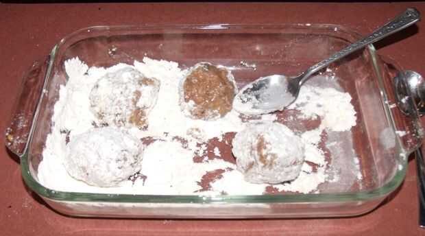 capa de harina, solo rodar las albóndigas alrededor en el plato con una cuchara