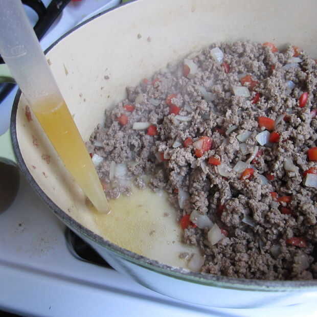 Usted necesitará vaciar la grasa como vas - utilizo carne de vacuno 80/20 y tengo casi un tarro de masón lleno de grasa fuera de él. Drenando el líquido le ayudará a cocinar, también!