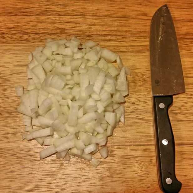 Para cortar un pimiento, primero cortar el extremo del tallo. Luego cortar longitudinalmente por la mitad, exponiendo el interior fibroso y semillas. Utilice ya sea los dedos o con la punta de la hoja, retire cuidadosamente esta membrana y semillas. Cortar longitudinalmente en tiras y luego a través de a un dado pequeño.