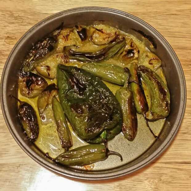 Asar los pimientos, apartar tus vegetales verdes restantes y añadir la cebolla a su candente mantequilla con una pizca de sal.