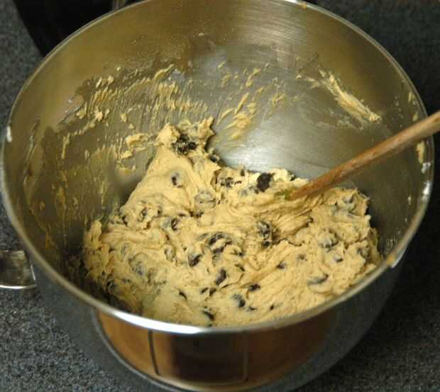 Luego se prepara la masa para galletas. Siempre prefieren y usar mezcla de galleta de Chocolate Chip de Betty Crocker para la base de la brownie porque es solo mi favorito sabor pasta de la galleta. Simplemente siga las instrucciones en el envase para preparar la masa agregando 1 barra de mantequilla blanda (no derretida) y 1 huevo a la mezcla seca y mezcla bien.
