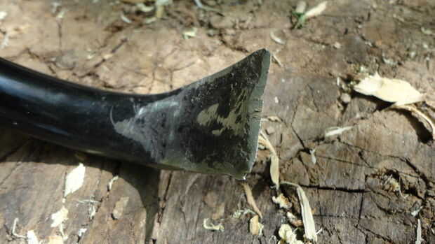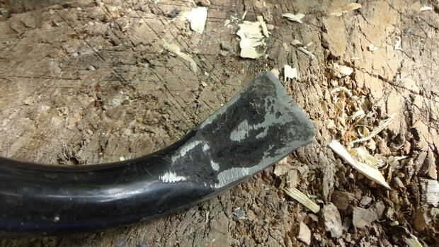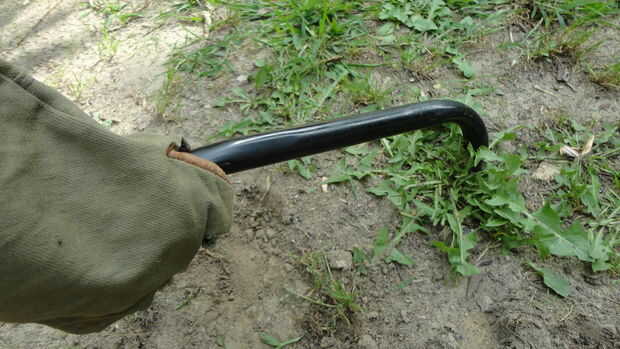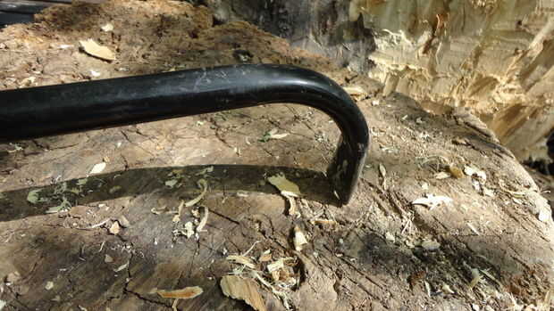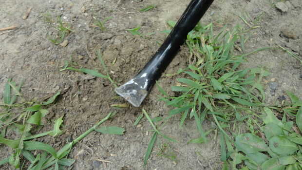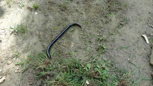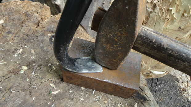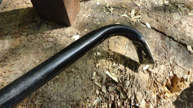 tuve algunos chatarra paredes delgadas pipa galvanizada, que creo que se utiliza en la esgrima. El extremo fue cortado en un ángulo agudo y, por alguna razón que llegué a pensar cerrado martilleo. Esta paleta de jardín es el resultado de ese impu