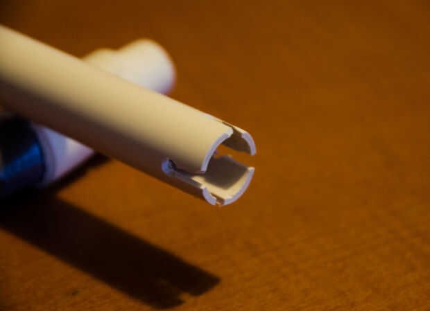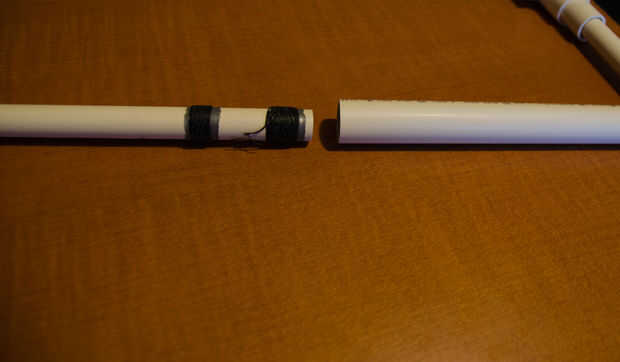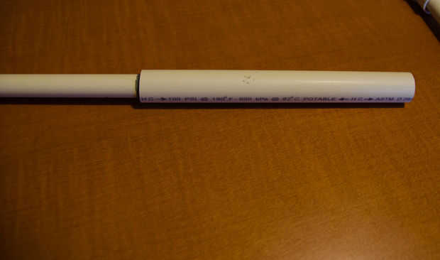 Cuando ya tienes la afinación exacta, chop off sólo una melodía poco más - esto hará un poco alto, pero también significa que podemos sintonizar con otra sección de la tubería. Encontré que una longitud CPVC de 3/4" al final funciona mejor para afinar los drones - simplemente deslícela hacia fuera para disminuir el tono o que vuelva a aumentar. También puede hacer algunas dremeling de lujo en el extremo de los aviones no tripulados para permitir que el aire escape en caso de accidentalmente cubre el extremo (e.g. meterlo en el sofá o en la pierna).