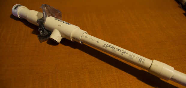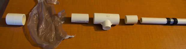 Montar un abejón, cortar dos pequeñas secciones de tubo de 3/4" y poner en cada extremo del tubo en T. También corte una sección larga 1/2" para la pieza principal del abejón. Asegúrese de hacerlo extra largas, ya que cuando nos afine voy cortando lo.