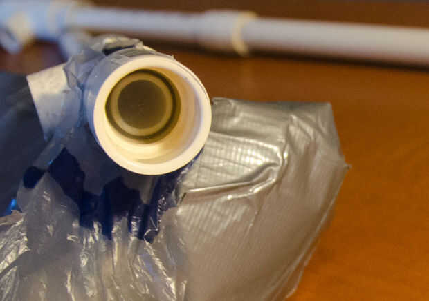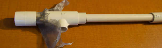 Aviones no tripulados (y el punteiro) hacen sonidos por la vibración de la membrana (la bolsa de plástico). Con la bolsa estirada tensa alrededor de un tubo de 3/4", el tubo 1/2" cuerpo se deslice dentro y entra en contacto con la membrana. Cuando se sopla aire en la tubería de 3/4", que viaja hacia arriba, más allá de la membrana y en el tubo de 1/2". Esto hace que la membrana vibre!