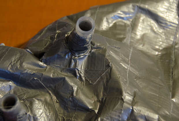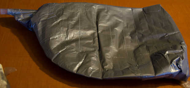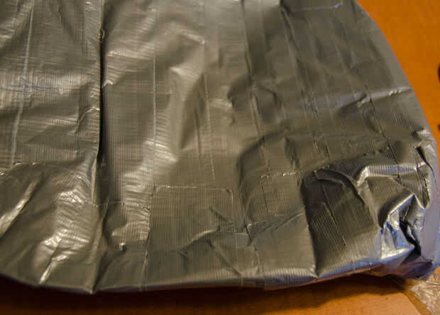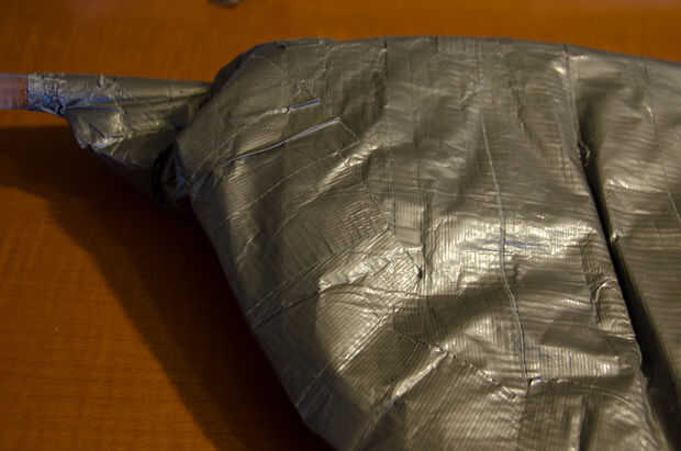 Finalmente, cerca la bolsa con una cinta ligeramente alrededor de la costura. Te garantizo que allí será fugas de aire, así que soplar en la bolsa, encontrar una fuga, cinta aislante y repetir. Ello, sin los aviones no tripulados en poner alguna cinta sobre cada orificio común mientras que la prueba.