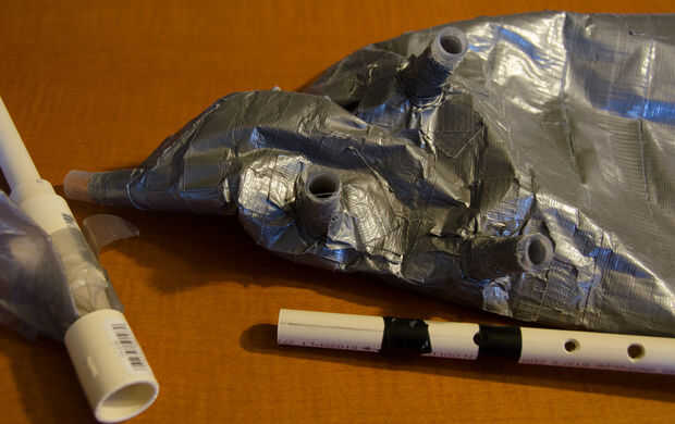 Cortar su stock (aproximadamente 2-2.5" cada uno) y se alinean con donde quieres que vaya. En mi bolso nuevo, tengo tres en la parte superior espaciado aproximadamente 1.5" aparte. El soplete va al frente, luego el drone de tenor, luego el bajo drone, pero realmente usted puede colocarlos en cualquier lugar que es cómodo para usted.