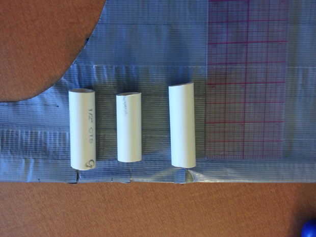 Como nota lateral - utilicé tubería de vinilo de 1/2" OD para mis acciones de la bolsa en mi primera iteración, pero recomiendo altamente usar CPVC de 1/2" en su lugar. Las compresas de vinilo cuando trato de poner los aviones no tripulados y el punteiro en y son algo resbaladizas en comparación con una ajustada conexión de CPVC.