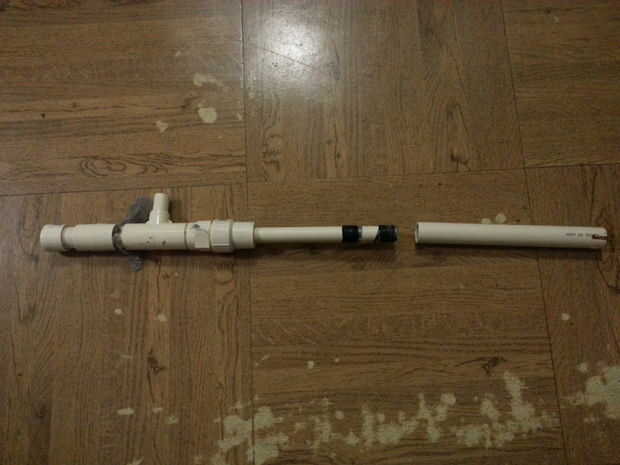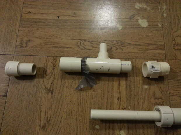 Esta actualización es un poco más compleja - para cada uno de los aviones no tripulados, compré una 3/4" rosca macho y juego acoplamiento hembra así como una 1/2" a 3/4" adaptador. Agujerea el interior del adaptador para que pueda deslizar el tubo de 1/2" aunque con algún esfuerzo, luego deslice el acoplamiento en la misma hembra. Luego agregar el acoplamiento masculino para el área exterior para que la sección CPVC de 1/2" largo puede ser roscada en su lugar.