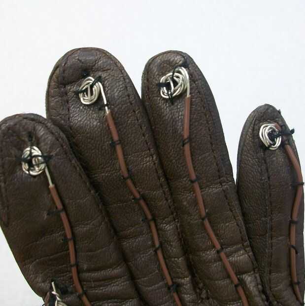 Coser los cables en el guante al bucle alrededor de cada conductor, con lazos espaciados aproximadamente 1/2 pulgada aparte. Coser a través de la piel, si usas guantes de cuero, puede ser algo difícil; Si encuentras que está doblando la aguja, utilice una aguja de bordado, que es más gruesa. Retuerza los extremos de los cables en las clavijas del interés y aplanar el alambre alrededor del perno para hacer una conexión sólida. Conecte un cable corto de conexión con el conector positivo de la arduino; necesita conectar varias resistencias a la energía positiva. Conecte un resistor de aproximadamente 200 ohmios para cada uno de los pines de entrada (nota que esto sólo será para los cuatro dedos y no para el pulgar). Conecte el otro extremo de cada una de estas resistencias el desde el pin positivo. Puede que desee utilizar aislamiento ha despojado de otros cables para aislar la resistencia lleva unos de otros.