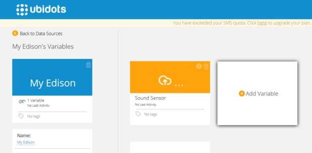 3) una vez creado el origen de datos debemos agregar variables a él. Aquí en este proyecto vamos para enviar los datos del Sensor y la temperatura, por lo tanto vamos a crear dos variables.