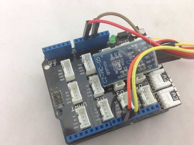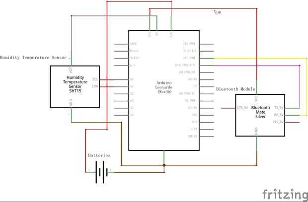 El traductor se basa en un tablero de Arduino Yun, que es un Consejo que se puede conectar a internet con el chip de Wi-Fi en su interior. Hemos añadido un escudo base de grove a él para que sea más fácil añadir sensores a él. Además, conectamos el receptor diente azul a la Junta para recibir las señales de la banda de forma inalámbrica. El sistema entero estaba envuelto en una cáscara de papel para que sea seguro para los bebés.