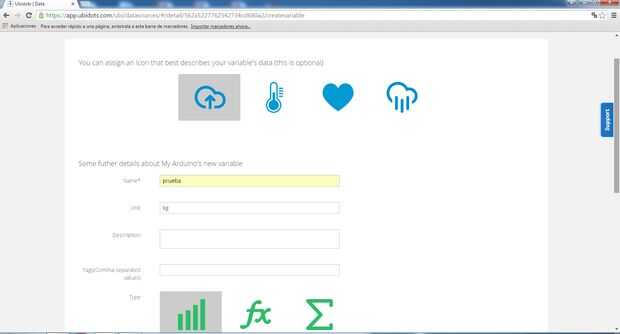 Paso 4: En Crear Variables Ubidots
