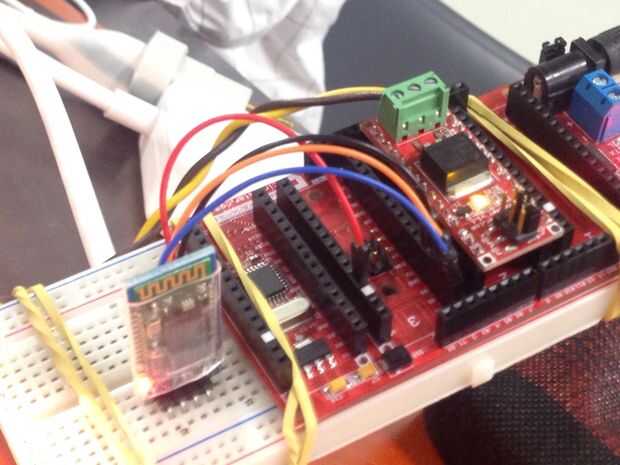 El Escudo de Bluetooth en el Protoboard y conecte los cables como en la imagen de arriba.