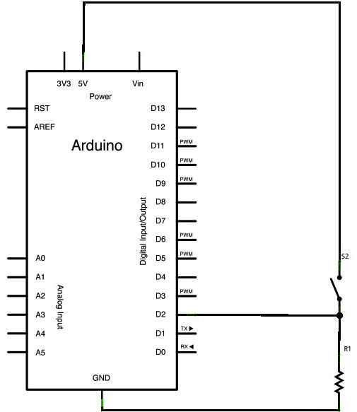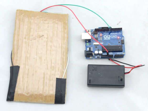 El alambre esmaltado desempeña un papel como el interruptor en el circuito. Cuando es conductor, la señal leída por la entrada-salida de la placa Arduino es 1; mientras que cuando se rompe, la señal de E/S sería 0. La primera figura muestra el concepto del circuito. Otra figura muestra la conexión de los cables.