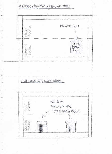 Con el fin de entregar correctamente aire fresco en la casa y para ayudar a eliminar el calor de la casa, instale el ventilador en el lado opuesto de Peltiers. Alambre de tal manera que empuja el aire fuera de la casa.