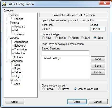 La velocidad también está situada a 115200. Ahora haga clic en abrir. Esto debería mostrar una pantalla en blanco. Presione Enter una vez.