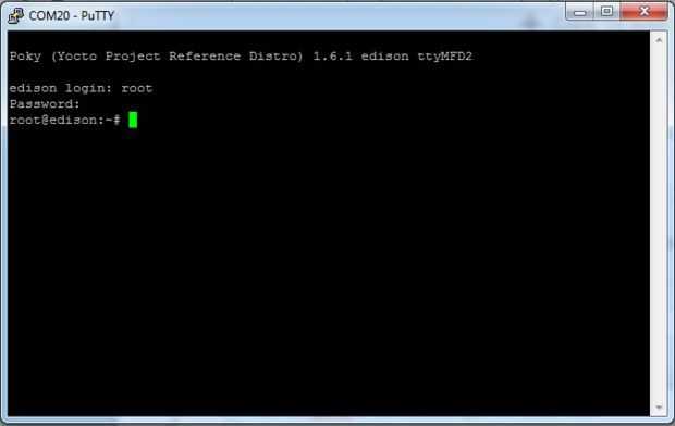 Así que accedemos a Linux en Edison con masilla. Usuarios Mac/Linux no requieren de masilla.