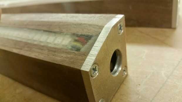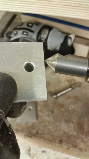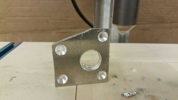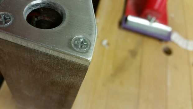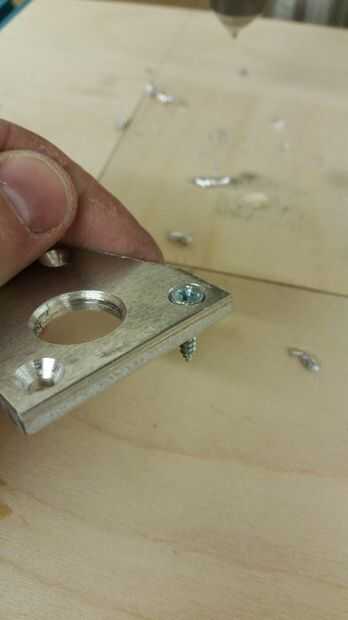 A continuación deberás localizar algunos agujeros - en un extremo tiene un agujero más grande para el botón momentáneo y el otro tiene un agujero más pequeño que el diámetro del alambre/cable que utilizas para alimentar energía y señales a los LED. Querrá el orificio del cable de hacer coincidir aproximadamente con el canal de cable y el agujero de botón, que usted querrá asegurarse de que no está demasiado lejos del canal. Marcar los agujeros, centro punch camfer y ellos por lo que la broca no pasear o Avellane los agujeros según sea necesario. No olvides los 4 orificios en cada plato colocar en el substrato de madera.