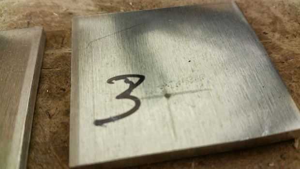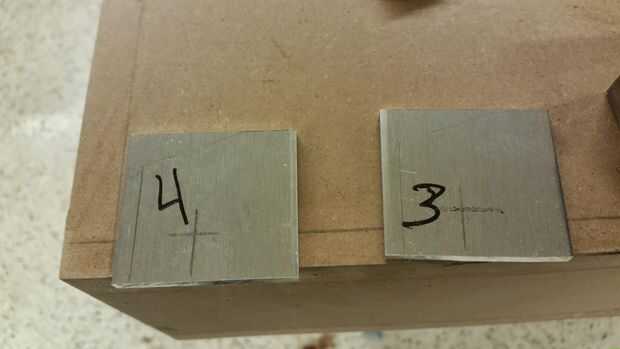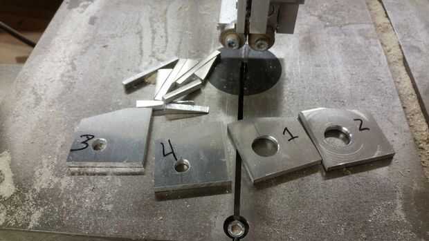 Corte la acción plana a medida con una sierra de inglete viejo regular, lo tienes alto razonable diente cuchilla y tomar el corte lento, que usted puede cortar aluminio sin problemas, solo no te apresures lo. A continuación he marcado cada placa con un número que se correlaciona al final de la madera con que iba a aparearse. Marcado el contorno con un rotulador y cortar hacia fuera en la Sierra de cinta.