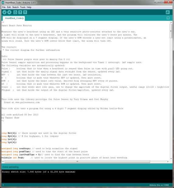 El siguiente paso es añadir el código para el programa usando el software de arduino. El código es un par cientos de líneas de largo, por lo que he subido a pastie.org. Aquí está el enlace