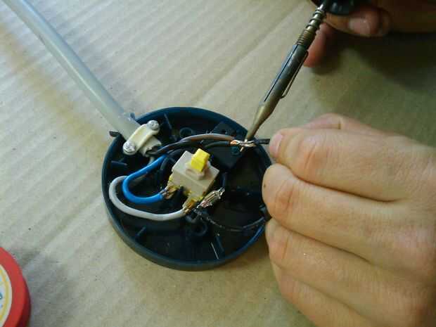 Soldar los dos cables y un contacto de la lámpara Junta y calor reducirlo.