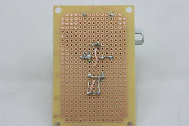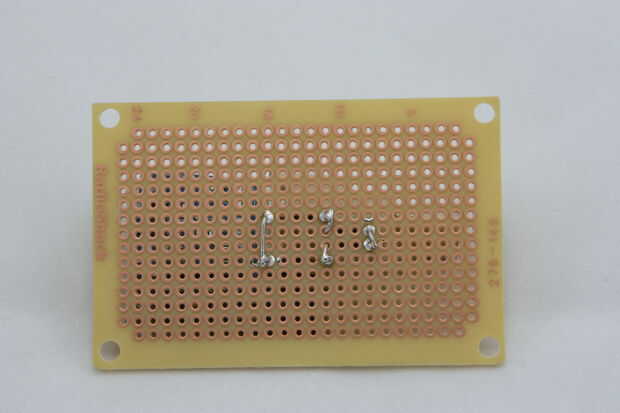 Lugar 3) condensador - el condensador y use sus conductores de cables en los rieles del positivos y negativos (el largo es + en la tapa), entonces la soldadura en su lugar.