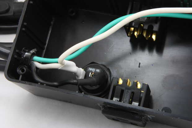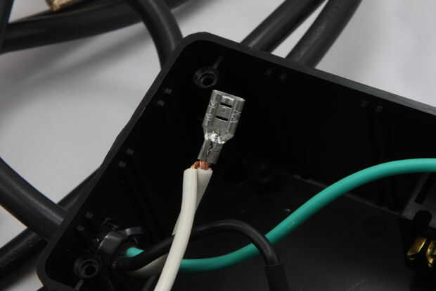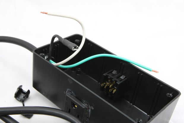 4) Coloque un conector a tierra y una sola línea para la otra toma de alimentación, éstos se van directamente a las tomas.