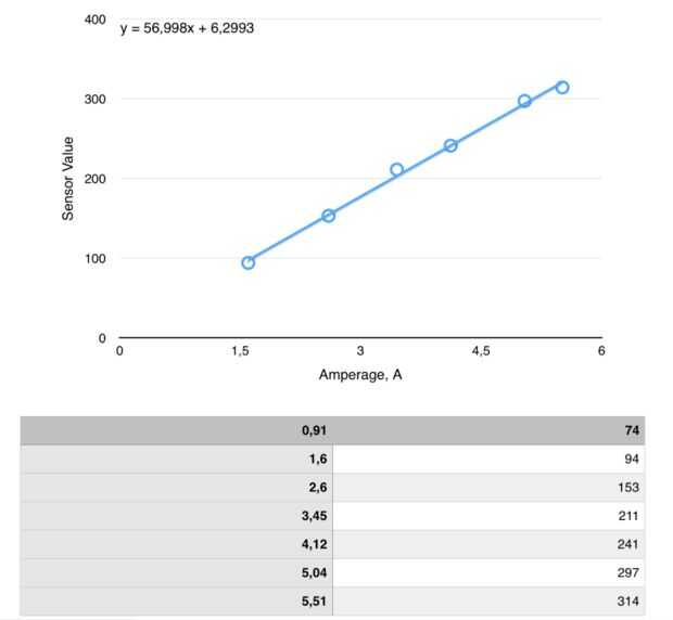 Empezamos a programar la toma de función de sensor de amperaje. Se ha hecho mediante la realización de una serie de experimentos con fuente de corriente.