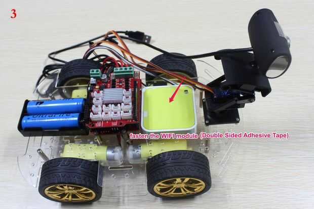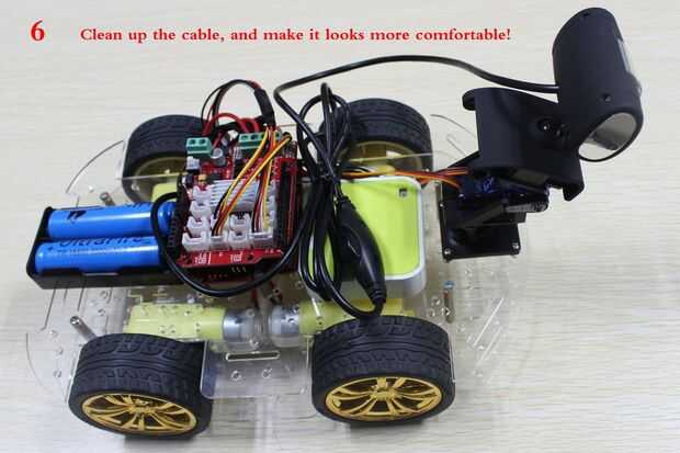 Por último, podemos limpiar el cable y que parece más cómodo! Muy bien! Un coche de REBOT VIDEO Wi-Fi se ha completado.