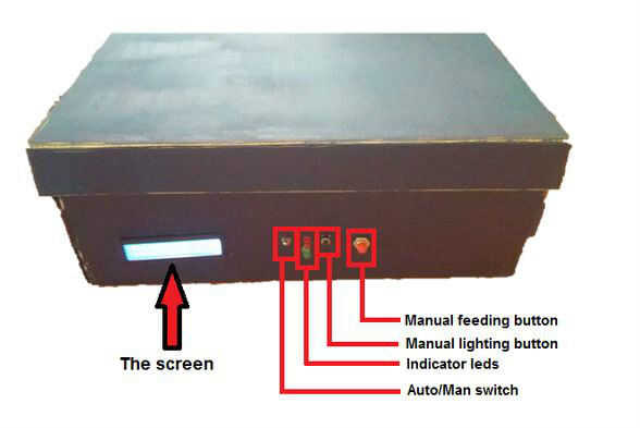 Con esta caja de zapatos, esto reduce el espacio del desorden. De hecho, la caja simplemente puede ser colocada junto al acuario y es más fácilmente portable. La caja de zapatos también cubrirá hasta cables demasiado expuestos. Sin embargo, la pantalla será aparente de la caja para observar la información que da.