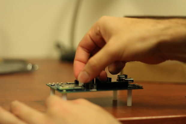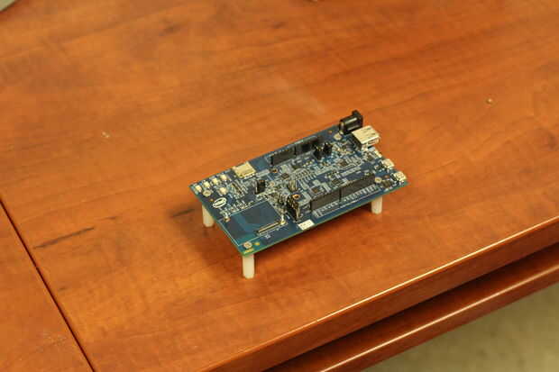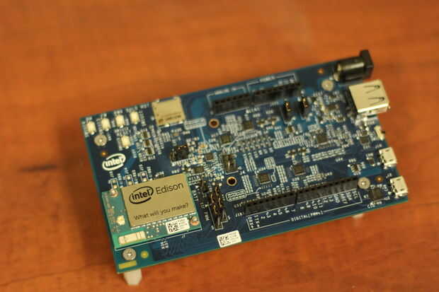 el primer paso en el proyecto de construcción es sujetar el chip Edison a la placa misma. Es un procedimiento muy sencillo que la mayoría de la gente será capaz de manejar sin dificultad adicional. El resultado final puede verse en las imágenes proporcionadas.