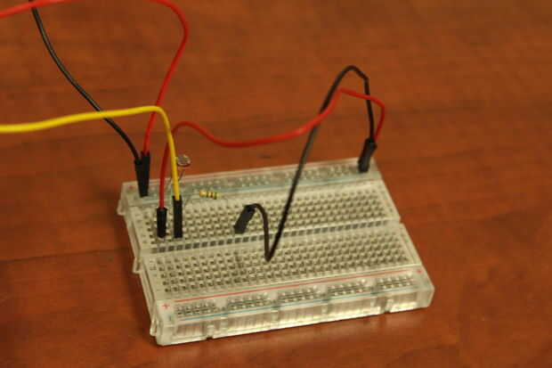 El tercer paso consiste en la recopilación de los datos relacionados con la luminosidad en un aula, por ejemplo. Necesitamos conseguir este valor podemos procesarla, envíe a la nube, aprender que es la mejor configuración para ese grupo específico y enviar los valores optimizados a la Junta por lo que puede adaptarse y mejorar el ambiente de aprendizaje, pero vamos a llegar a eso en otros pasos. Por ahora, simplemente ataremos un sensor de luz a la analógica en A0 (es el cable amarillo en la imagen), asegurándose de que está conectado correctamente y luego conectar una resistencia por razones de seguridad. Aquí, prácticamente cualquier tipo de resistencia hará porque su tarea es sólo para proteger los sensores. Conectando un resistor no es obligatorio pero es muy recomendable por motivos de seguridad.