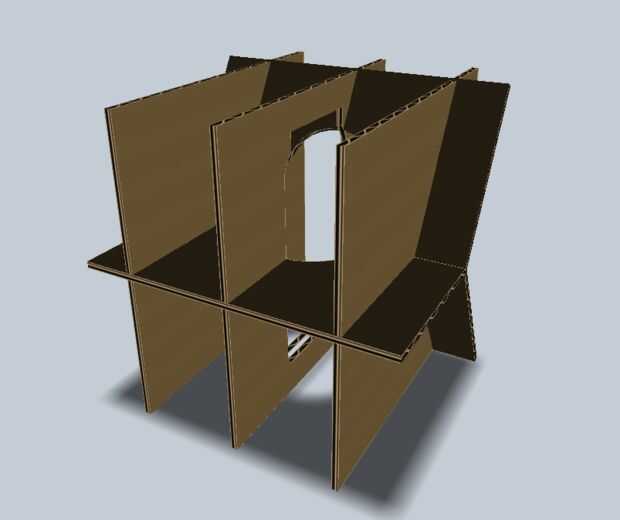Donde trabajo, nos acumulan cantidades increíbles de cartón cada semana. Si bien contamos con reciclaje, parece terrible desperdicio tirar cajas de cartón aplanadas sin reutilizar por lo menos una vez. Mi departamento, a pesar de tener mucho equipo potente y brillante para hacer cosas, tiene un cortador láser. Es por mucho mi herramienta favorita. Empecé con grabados 2D, que luego se trasladó a 3D cajas y cajas con todo tipo de juntas. Entonces descubrí hace Autodesk 123D. Como la mayoría de la gente que lo ha descargado, tuve un montón de diversión diseñando objetos de pila capaz de hojas corte tenía alrededor de: pelotas de fútbol, un modelo de ADN, la mascota de la escuela, etc.. Durante el uso de este cartón de desecho, realmente consiguió me preguntan... ¿Qué objetos no? Sabes, agujeros, huecos, vacíos, huecos, cavidades. Pude crear personalizados enrejados de cartón para el envío de artículos delicados mientras que reutilizar el cartón de desecho!