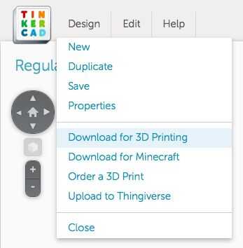 Para guardar el modelo, seleccione "Descarga para impresión 3D" forma el menú desplegable de diseño. Guardar como un archivo STL.
